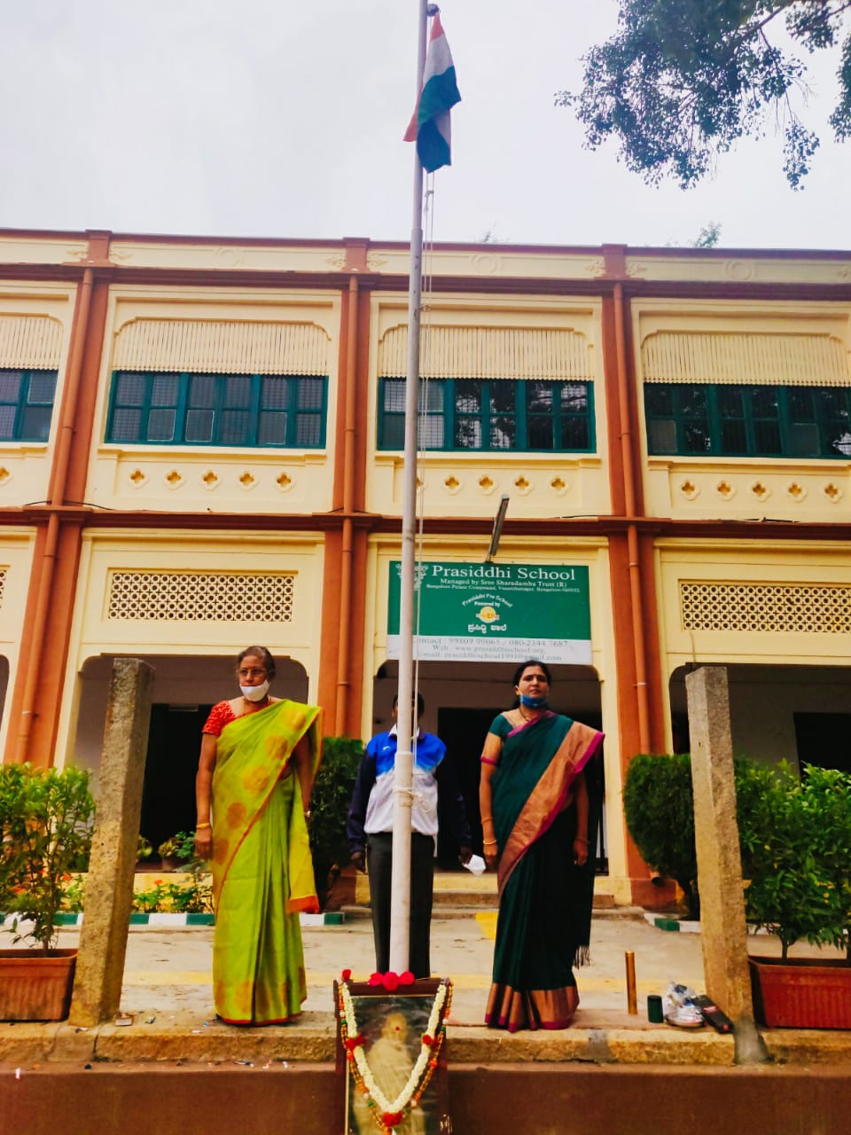 1st of November is the day when the people from all over Karnataka unite to celebrate the region of Kannada speaking people. The two vibrant colours in our flag- yellow and red, represent prosperity, well- being and auspiciousness. At Prasiddhi, the teachers celebrated Rajyotsava, dressed up in flag colours. The flag was hoisted by our Pre- Primary in- charge Ms. Latha Sridhar. The students rejoiced the occasion virtually and shared their patriotism through art work, music, dance , role play and so on.